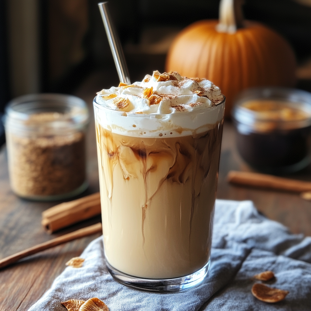 The Iced Pumpkin Cream Chai Tea Latte is a delightful autumn-inspired drink that combines the rich flavors of pumpkin puree with aromatic chai spices, creating a creamy and refreshing treat. Perfect for cozy afternoons or festive gatherings, this latte is easy to make at home and customizable to your taste. With its beautiful presentation and comforting flavors, it’s sure to impress your friends and family. Top it off with homemade whipped cream for an indulgent experience that captures the essence of fall in every sip.
