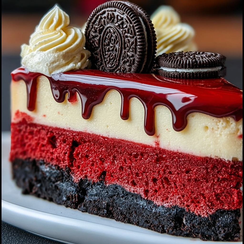 This Red Velvet Oreo Cheesecake is a delightful dessert that combines layers of crunchy Oreo crust, creamy red velvet cheesecake, and smooth vanilla cheesecake. Topped with rich chocolate ganache, this …